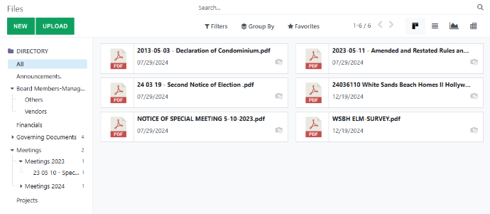 Keep meeting minutes, budgets, notices, bylaws, financials, and contracts in one place.